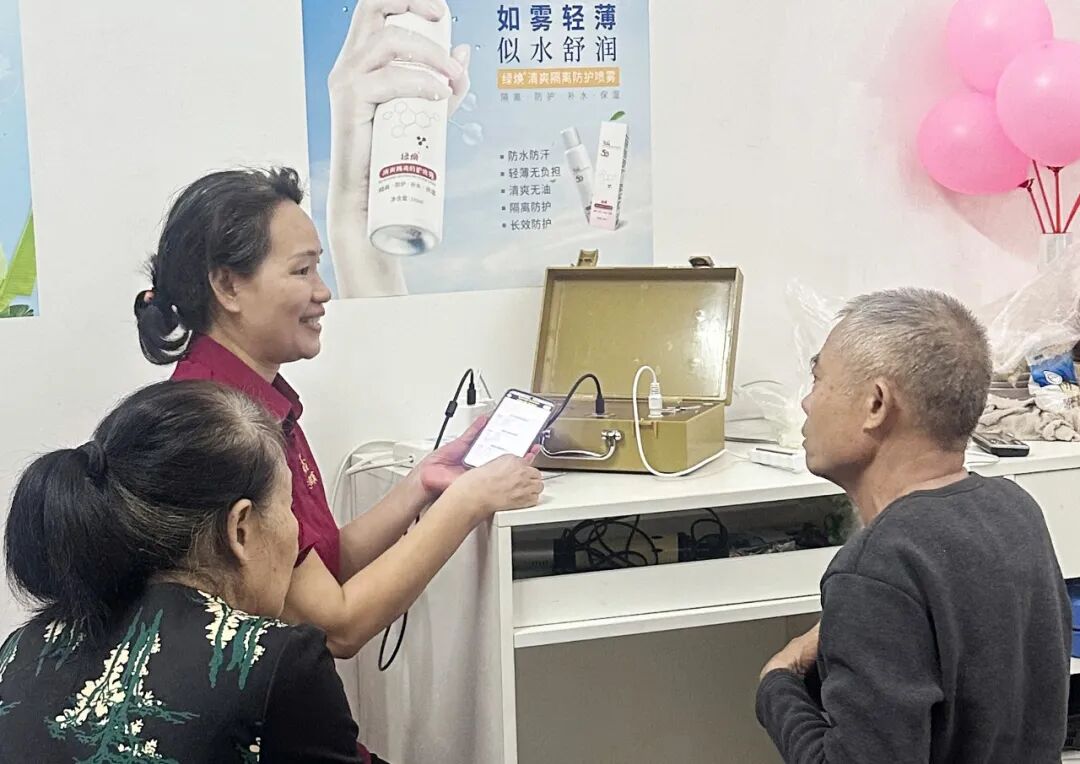 开业当天,体验店便展现出强大的吸引力,许多北流市民闻讯前来,积极参与健康检测与咨询。其中,集团旗下的明星产品——沁润明眸舒缓滋养护眼液,成为现场当之无愧的焦点。在这个几乎人人用眼过度的时代,它为无数双疲惫的眼睛带来了及时的舒缓。现场体验的市民纷纷称赞其清凉滋润,能够快速缓解眼睛疲劳,“眼睛一下子放松了,看东西都清亮了不少!”——这样真实的反馈,是对天绿元素系列产品最好的肯定。