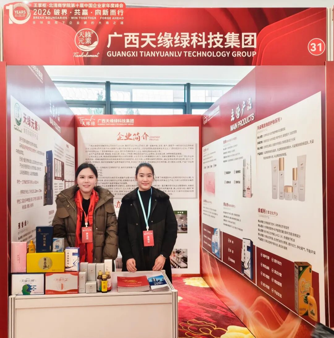 2026年1月17日至18日,由北清商学院主办的王掌柜·北清商学院第十届中国企业家年度峰会在北京园博大酒店圆满举办。广西天缘绿科技集团作为受邀出席的广西生物科技企业亮相峰会,与全球2000余位企业家共聚一堂,以“破界·共赢·向新而行”为主题,深入探讨新时代商业变革与创新路径,展现企业使命担当与科技引领未来的卓越风采。
