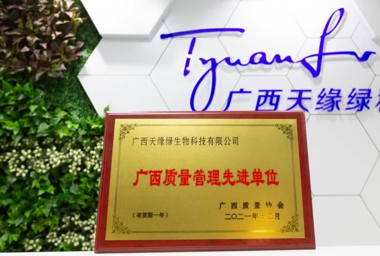 近日,广西质量协会举行第九届五次会员大会(线上),表彰质量管理先进集体和个人,天缘绿集团母公司-广西天缘绿生物科技有限公司获评“2021年度广西质量管理先进单位”,技术服务部总监李丰荣获“2021年度广西优秀质量管理先进工作者”称号。