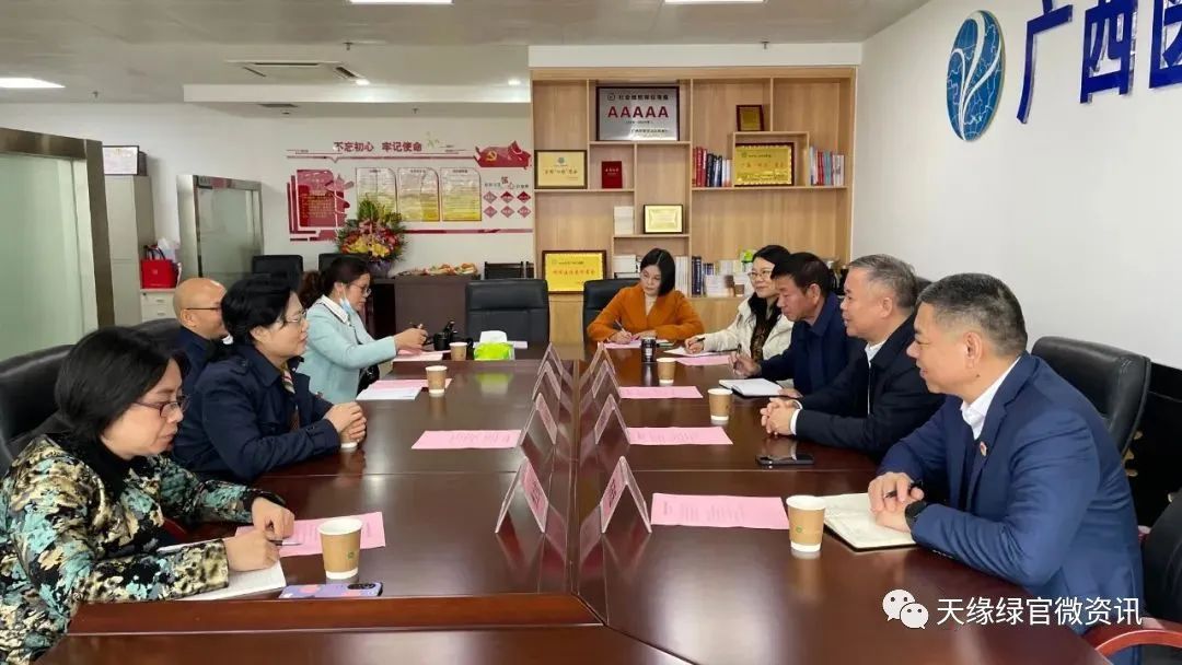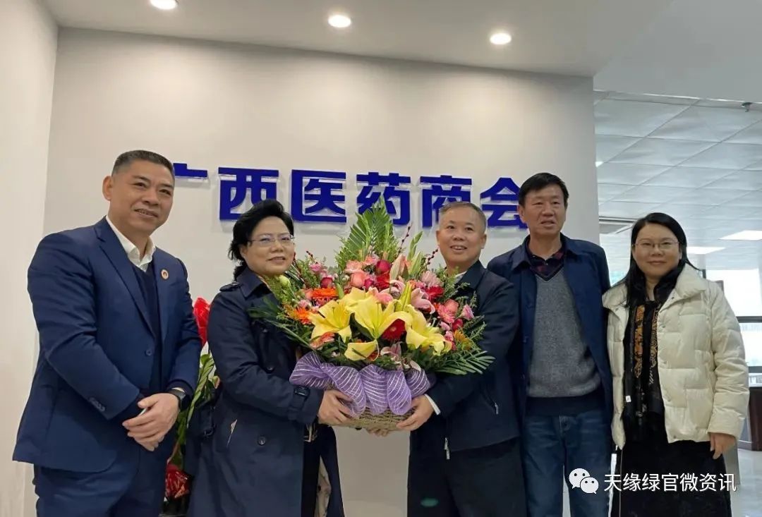 天缘绿集团运营总裁兼广西医药商会副会长郭阳接待了磨长英主席一行的走访慰问