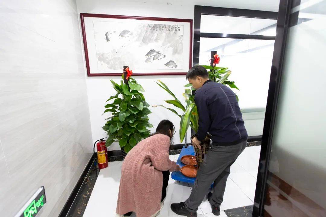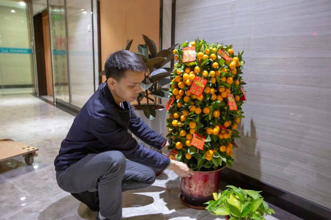 总务部小伙伴们,拉着拖车,一株株更替上新的绿植,无论走到哪,都能看到生机盎然的景象。尤其是大门处两株寓意“大吉大利”的金桔树,让每位进出公司的家人,都能感受到浓浓的新春氛围!