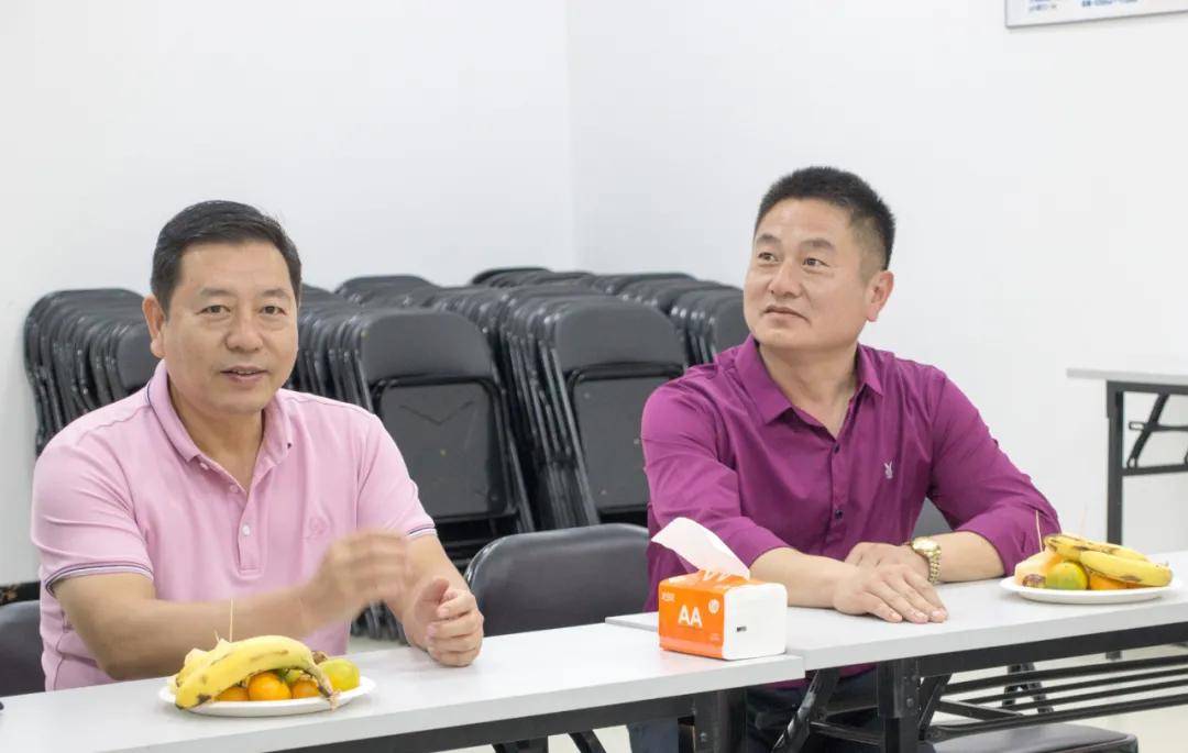 考察团一行在体验中心会议室观看了集团宣传片,并与李丰先生、肖甲孟先生以及三位受益者进行了座谈交流。